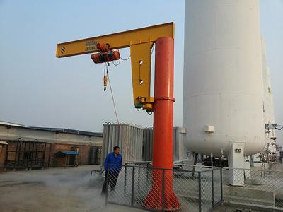 壁行式悬臂起重机是在壁柱式悬臂起重机的基础上研制的一种新型物料吊运设备。该机行走道轨安装在厂房的水泥柱上,沿着道轨可做纵向运动,同时电动葫芦又可完成沿选悬臂的横向运动以及垂直方向的起吊。该机极大的扩展了作业范围,更为有效的利用了厂房空间,使用效果更加理想。