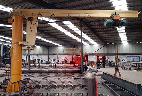 壁行式悬臂起重机是在壁柱式悬臂起重机的基础上研制的一种新型物料吊运设备。该机行走道轨安装在厂房的水泥柱上,沿着道轨可做纵向运动,同时电动葫芦又可完成沿选悬臂的横向运动以及垂直方向的起吊。该机极大的扩展了作业范围,更为有效的利用了厂房空间,使用效果更加理想。