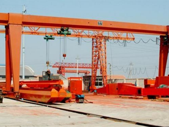 单主梁门式起重机结构简单,制造安装方便,自身质量小,主梁多为偏轨箱形架结构。与双主梁门式起重机相比,整体刚度要弱一些。因此,当起重量Q≤50t、跨度S≤35m时,可采用这种形式。单主梁门式起重机门腿有L型和C型两种形式。L型的制造安装方便,受力情况好,自身质量较小,但是,吊运货物通过支腿处的空间相对小一些。C型的支脚做成倾斜或弯曲形,目的在于有较大的横向空间,以使货物顺利通过支脚。