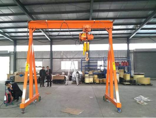 一种小型起重设备,横梁和立柱的结构呈“门”字形,可以在轨道上或者是平坦的水泥地面移动,具有较大的起重量,可用于码头、汽车制造、模具铸造车间、机械车间工位吊装作业与仓储物流等场合。