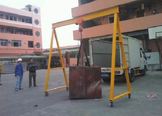 小型简易龙门架是一种可全方位移动的轻小型起重设备。小型简易龙门架主梁为工字钢等型材,既承重又作为葫芦的横移轨道。龙门架支腿下装有万向载重轮,可在平整地面上全方位移动。龙门架主梁与支腿之间通过法兰板用高强螺栓连接,可快速拆卸安装,用小型汽车就可转移到另一个场地安装使用。通过电动或手拉葫芦,可起吊500~5000KG的重物。可减少人力,实现起重机械化,降低生产运营成本,提高工作效率。尤其适用于模具制造企业、矿山、汽修工厂、工地、物流公司、机械加工制造企业、仓库等需要起重的场合。